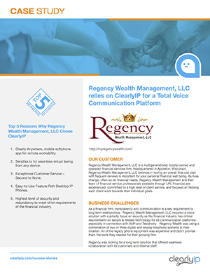 ClearlyIP designed a complete voice platform package to implement for Regency. From robust appliances to physical desk phones. Mobile enhanced softphones to a virtual fax platform. All backed with white glove service/support for ease of implementation and training.