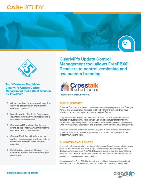With the growing number of deployed FreePBX® based systems, Crosstalk needed a solution to these ongoing issues and improved management requirements.
