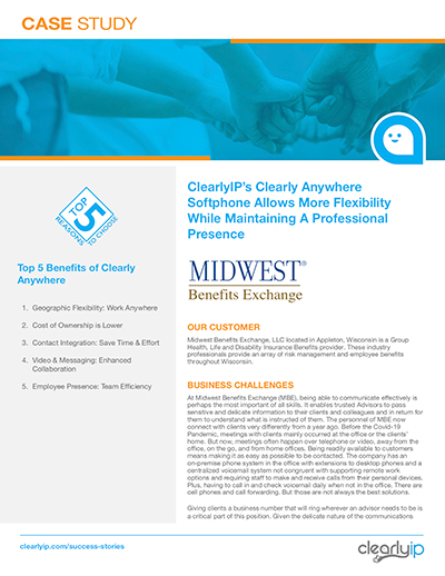 The ability to make and receive calls from a computer, tablet, or smartphone would help greatly when working from home or on the go—showing the companies main telephone number for outbound calls to maintain professionalism and provide clients peace-of-mind when accepting calls from a Midwest Benefits Exchange team member.