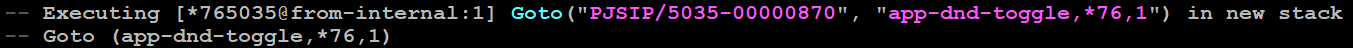 As you can see, the DND toggle switch sends the feature code (*76) and the extension (5035) from where we are setting the DND state.