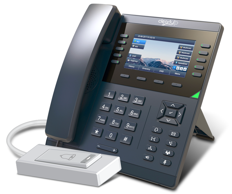 A single button that instantly dials multiple programmed numbers and plays a pre-recorded message to the recipients. The phone then goes into a broadcast-only mode, allowing the people on the receiving end to note the location of the call, and hear what is transpiring in the room. The Panic Button™ is available in two different options, the standard method is a designated button on the phone itself. The other option is an add-on USB button that connects to the phone.